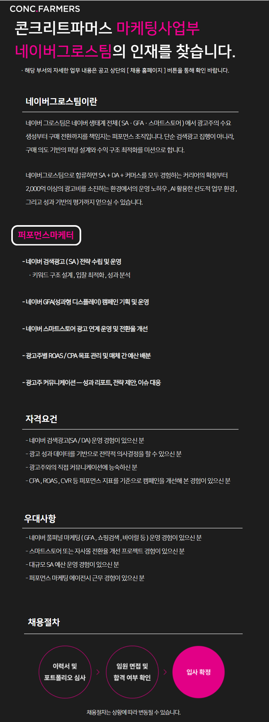 [네이버그로스팀] 퍼포먼스마케터 채용 | (주)콘크리트파머스